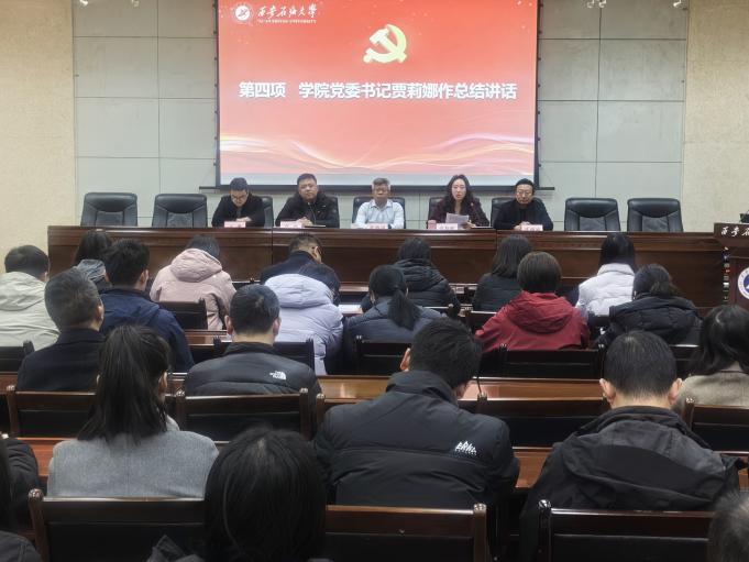 学院党委书记贾莉娜对“学党章铸忠诚,悟思想强使命”专题学习班作总结讲话。她指出,本次专题学习班主题鲜明、内容丰富、形式多样,既有理论高度,也有实践深度,更是一场深刻的党性教育和精神洗礼,通过学习,全院师生进一步坚定了理想信念、进一步增强了党性修养、进一步推动了党建与业务的深度融合、进一步增强了师生的凝聚力和向心力。她强调,学习班的结业不是终点,而是新的起点,全体师生要以此次学习为契机,持续深化党章学习,坚定理想信念,强化使命担当,把学习成果转化为推动学院高质量发展的强大动力,为建设特色鲜明、国内一流的管道工程学院贡献智慧和力量。