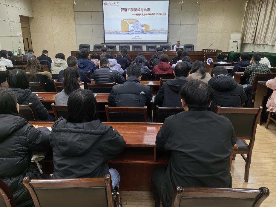 会上,张骁勇对全院师生从专业视角分别按照油气储运、安全工程、土木工程三个方向各提出三点希望:一是“铸魂”,重塑课程思政新内涵。对于油气储运专业,要在讲授“全国一张网”格局、跨国管道战略意义时,深刻揭示其对于国家能源自主、地缘政治博弈的核心价值,培养学生作为 “国家能源系统调度师” 的格局与担当。对于土木工程专业,要在讲授管道穿跨越工程、地质灾害防治时,弘扬 “攻坚克难、打造不朽工程” 的工匠精神,将“隐蔽工程、百年品质”的职业伦理深植学生心中。对于安全工程专业,要深刻阐释管道安全是 “总体国家安全观”在能源领域的具体体现,将安全职责从“避免生产事故”提升到 “捍卫国家经济生命线和公共安全” 的崇高境界;二是“强技”,更新知识与能力体系。对于油气储运专业,教学重点要从“工艺设计”向 “系统优化” 和 “智能决策” 转变,培养学生运用大数据和AI工具解决复杂管网问题的能力。对于土木工程专业,要教导学生不仅关注“如何建得成”,更要思考“如何建得智能、如何感知自身状态”。对于安全工程专业,要教授基于大数据和人工智能的风险预测预警、基于数字孪生的应急推演与决策、复杂系统韧性评估等现代安全工程方法;三是“力行”,创新教学与科研实践。对于油气储运专业,要开发基于数字孪生的管网模拟仿真教学平台,让学生在人机互动中学习智能调度,主动对接国家管网“七大方向”,在掺氢输送、大型管网仿真软件自主化等关键领域开展应用型研究。对于土木工程专业,继续推广BIM与 GIS在管道设计课程中的深度融合应用,聚焦管道新型材料、高效智能建造技术等领域,推动科研成果向工程标准和教学案例转化。对于安全工程专业,要利用虚拟现实技术构建管道泄漏、地质灾害、网络攻击等沉浸式应急演练场景。围绕国家管网“本质安全”方向,在管道裂纹智能识别与生长预测、多灾害耦合致灾机理、系统安全弹性恢复等前沿领域开展研究,为行业提供先进的理论和工具支持。